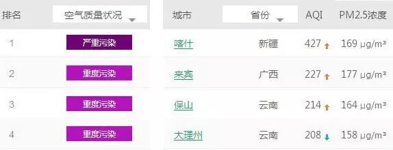 3月23日中午12时来自绿色呼吸网的数据显示,大理空气质量指数(AQI)最高峰时为208,PM2.5浓度达到200微克/立方米,属重度污染,全国空气污染程度排名第四。小翠不禁惶恐:难道向来以“蓝”出名的大理也雾霾了??